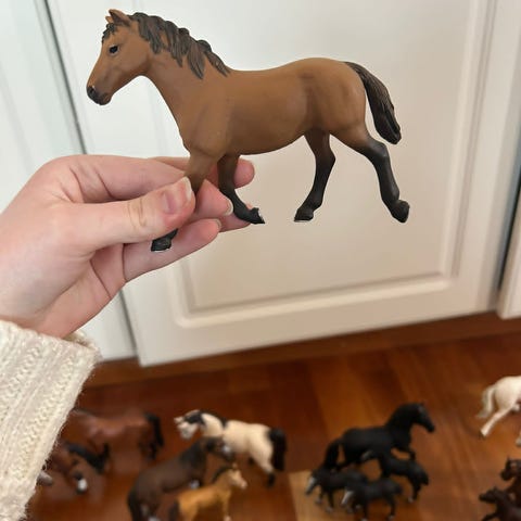 Schleich hevosfiguuri ruskea muovi. Ruskea, mustaharjainen hevonen, valmistettu kovasta muovista. Sopii leikkeihin ja kokoelmiin Schleich-eläinhahmojen kanssa. Huomaa pienet värivirheet.