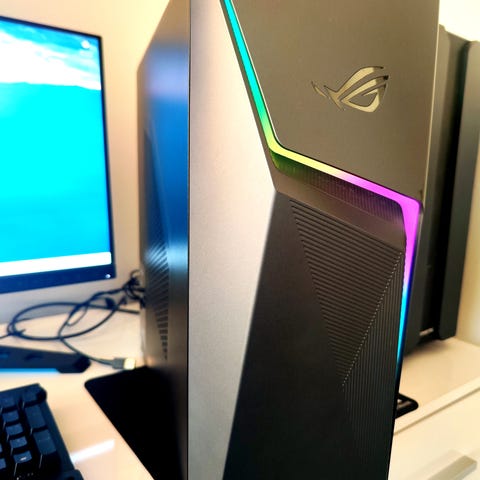 Pelitietokone setti jossa on pelikone, näyttö, Corsair RGB hiiri ja Corsair RGB näppäimistö