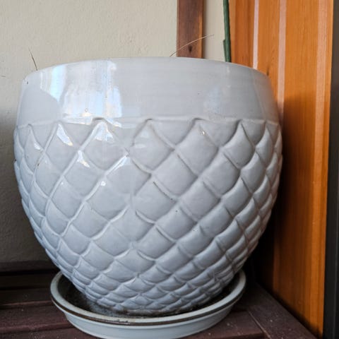 Hyväkuntoinen ruukku halk. 46 cm, sopiva ulkokäyttöön , keraaminen.
