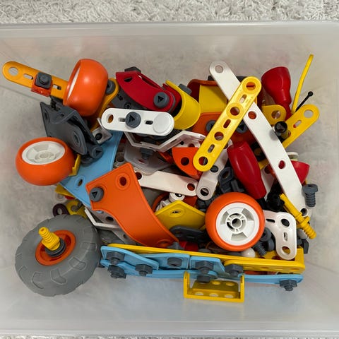Meccano rakennussarja ajoneuvojen kokoamiseen. Rakennussarjaan kuuluu useita erilaisia metallisia ja muovisia osia, kuten palkkeja, liitososia, renkaita ja akseleita, joista voi koota erilaisia ajoneuvoja. Mukana on ohjevihkoja ja laatikko osien säilytykseen. Sarja soveltuu rakennus- ja konstruktioleikkeihin sekä mekaanisten rakenteiden harjoitteluun. Vain nouto.