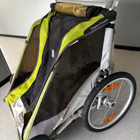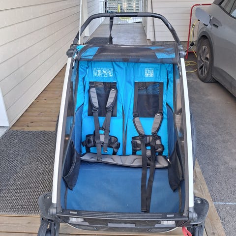 Myydään Pyöräkärry yhdelle tai kahdelle lapselle. On myös mahdollisuus yhdistää vauvan makuuosa.