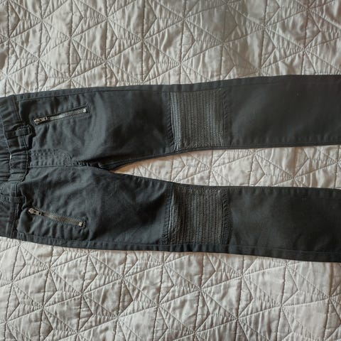 H&M lasten farkut denim-materiaalista. Väri sininen, kulutetun näköinen pesu. Koko 98 cm, unisex-malli. Perinteinen viisitaskuinen malli, vyötäröllä vyölenkit ja nappi-vetoketjukiinnitys. Sopivat arkipukeutumiseen lapselle, jonka pituus on noin 98 cm.