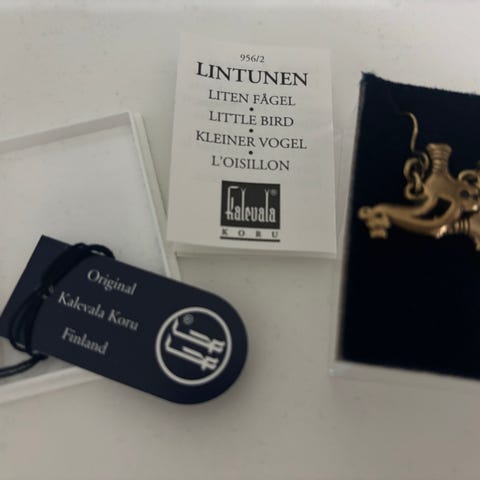 Käyttämättömät Kalevalan Linnanniemen lunula -korvakorut.