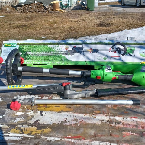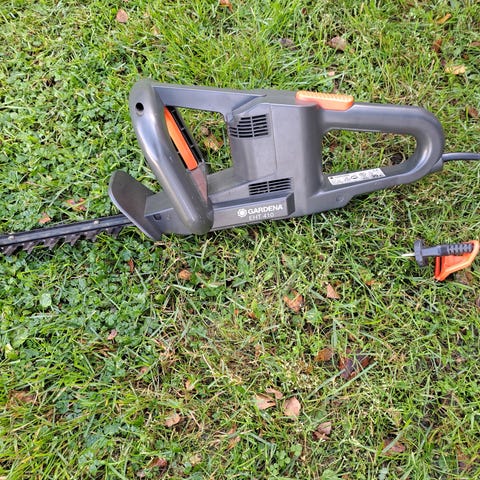 Sähkökäyttöinen pensasleikkuri.