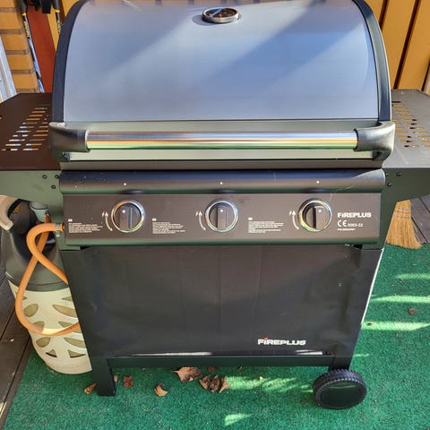 Fireplus Canvas 3 -kaasugrilli kolmella valurautapolttimella. Grillissä on metallirunko, sivutasot molemmilla puolilla sekä ritilä- ja parilapinta grillaukseen. Kannen sisäpuolella on lämpöhylly. Soveltuu ruoan valmistukseen ulkokäytössä kaasupullon kanssa. Käytön jälkiä ja pintaruostetta on näkyvissä. Vähän käytettyä grilliä on säilytetty ulkona ilman suojapeitettä, siksi siinä on ruostetta. Polttimot saattavat olla vahingoittuneita tai tukossa ruosteen takia. Kyseessä on korjaus- ja/tai varaosakohde, josta voi hyvällä puhdistamisella saada kelpopelin. Grilliä on käytetty vain vähän, mutta ulkona tapahtunut säilytys on rapauttanut kuntoa.