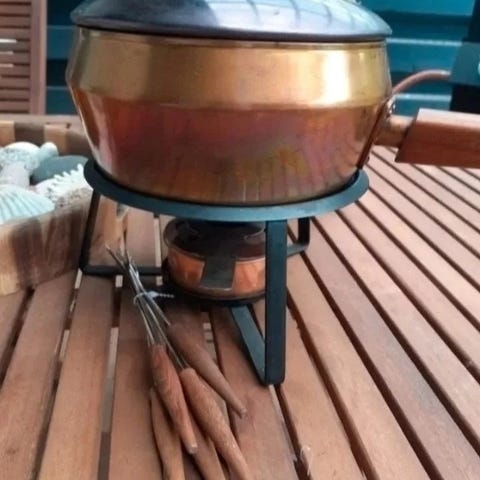 Tyylikäs ja siisti keraaminen fonduepata ja 4 fonduehaarukkaa