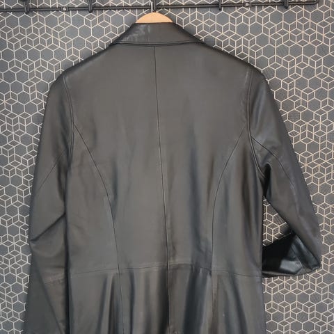 Tyylikäs ja näyttävä musta nahkatakki tunnetulta Jofama -merkiltä (Kristine Ullebø).