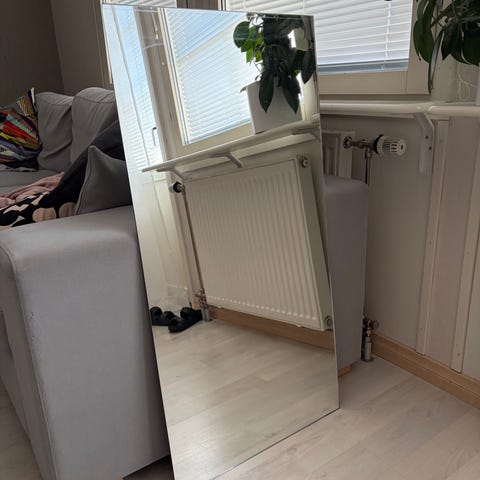Todella hyväkuntoinen peili 50x100cm. Paksuus 3mm. Mukana tulee kiinnikkeet.