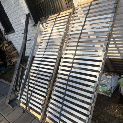 IKEA sängynrunko ja sälepohja valkoinen puu/metalli
