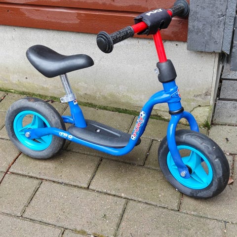 Hyvässä kunnossa oleva potkupyörä. Eikun ajamaan.