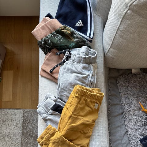 Toiset housut on fleecekangasta sisällä ja puuvillakangasta päällä. Hauskat silmät pepun puolella.