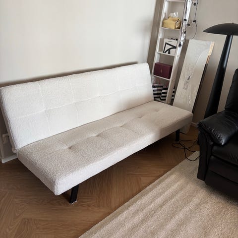 Sopii erinomaisesti vierasvuoteeksi tai päivittäiseen käyttöön. Mekanismi toimii moitteettomasti ja sohva on kauttaaltaan hyvässä kunnossa.