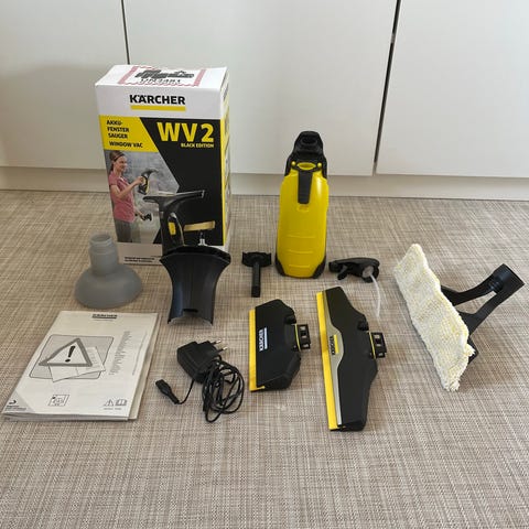 Kärcher WV ikkunanpesuri. Sähkökäyttöinen laite ikkunoiden ja muiden sileiden pintojen puhdistukseen. Mukana kaksi erikokoista lastaa, mikrokuitumoppipää, laturi sekä Kärcher Glass Cleaner -puhdistusainetiiviste. Soveltuu esimerkiksi ikkunoiden, peilien ja suihkuseinien puhdistamiseen.
