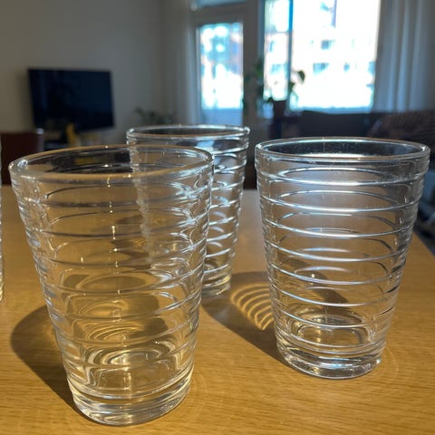 Iittala Aino Aalto - juomalasit 6 kpl. Väri tumman harmaa / taittaa siniseen. Isompaa mallia eli tilavuus 33cl. Yhteishinta 25€.