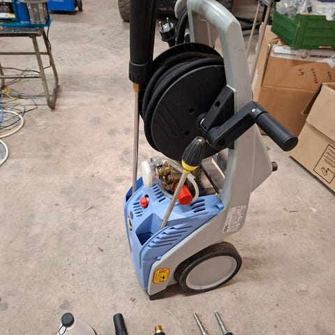 Käytetty Diversey J2000 matalapaineletkusto. Laite on seinään kiinnitettävä annosteluyksikkö, joka on tarkoitettu pesuaineen sekoittamiseen ja annosteluun veden kanssa. Mukana tulee sininen pesuletku ja pesukahva/suihkupistooli. Sopii esimerkiksi elintarvike- tai siivouskäyttöön tiloihin, joissa tarvitaan pesuaineen ja veden sekoitusta ja huuhtelua. Käyttöön tarvitaan vesiliitäntä ja pesuainekanisteri, jotka eivät sisälly kokonaisuuteen.