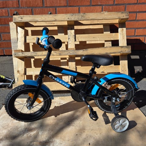 Lasten pyörä 12, tuuman renkailla. Apupyörät mukana.