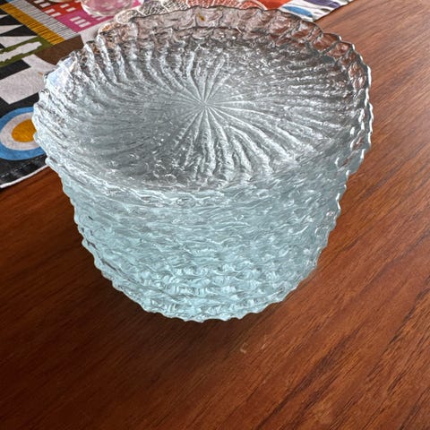Hyvä kuntoiset Pisara kuvioidut kirkkaat lasilautaset. 7kpl.