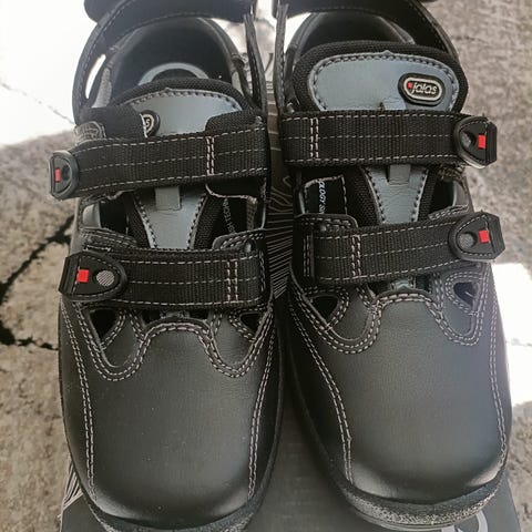 Jalas työkengät, koko 39. Väriltään mustat, joissa keltaisia yksityiskohtia. Kengissä on tarrakiinnitys ja vahvistettu kärki. Pohjassa on karkea kuviointi, joka tarjoaa pitoa erilaisilla alustoilla. Sopivat työ- ja suojajalkineiksi esimerkiksi teollisuus- tai varastoympäristöihin sekä muuhun käyttöön, jossa tarvitaan tukevia ja suljettuja kenkiä.