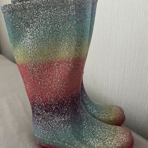 Ihanat glitter kumisaappaat, joissa sateenkaaren värit.