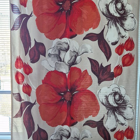 Erinomaisessa kunnossa olevat kaksi verhoa. Verhojen nimi vallila yöketut. Leveys 145cm ja pituus 252cm.