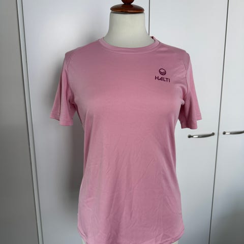 Musta Haltin naisten treenipaita/tekninen paita. Koko 38. Materiaali: 100% kierrätetty polyesteri. Kai-kai mitta 44cm, olka-helma mitta 63cm. Hyväkuntoinen, ehjä, siisti, ei tahroja. Postikulut ostajalle.