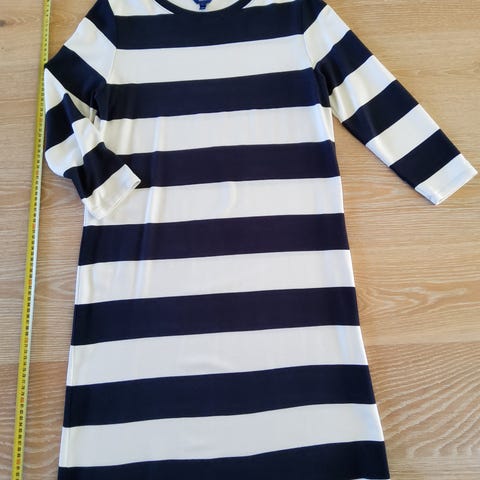 Gant naisten kesämekko, koko L. Mekko on yksivärinen sininen ja valmistettu viskoosista. Mallissa on pyöreä pääntie, lyhyet hihat ja kevyesti rypytetty vyötärö, joka luo hieman muotoa. Helma on polvipituinen tai hieman sen alapuolelle ulottuva riippuen käyttäjän pituudesta. Materiaali on ohutta ja laskeutuvaa, sopii hyvin lämpimiin säihin. Hoito-ohjeet löytyvät vaatteen sisäpuolella olevasta pesulapusta.