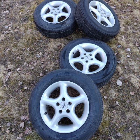 Myydään 2kpl 165/70R13 kokoiset kesärenkaat. Vanteen pulttijako 4x100 ja keskireikä käsittääkseni 58.1mm (katso kuva jossa mitta).