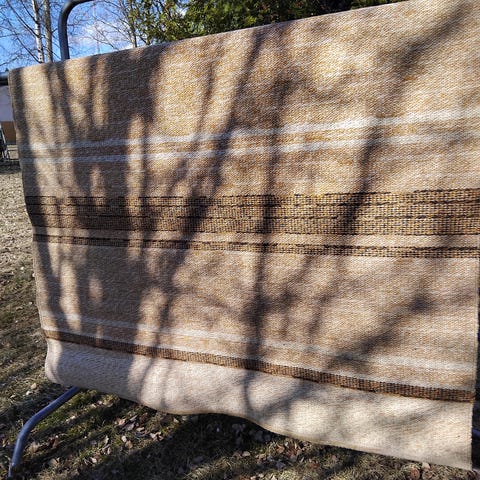 Laadukas, iso Askosta ostettu, luonnonvalkoinen villamatto. Koko 150cm×225cm. Matosta on irronnut "lankoja", kun koira on raapinut sitä. Katso kuva. Huomioitu hinnassa. Pesty. Nouto Oulaisista.