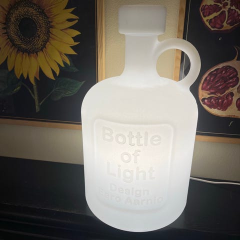 Eero Aarnion suunnittelema Bottle of Light . Valaisimessa on punainen johto ja johdossa kytkin. Johdon pituus n.180cm. Pohjassa on metallinen kilpi, jossa tekniset tiedot. Lampun korkeus n.39cm ja pohjan halkaisija n.20cm. Käyttää E27-kantaista lamppua (tarkemmat tehotiedot pohjalevyssä). Ostettu 99€. Myyn 80€. Ei vaan löytänyt paikkaa meillä. Mmm. Koirakoti.