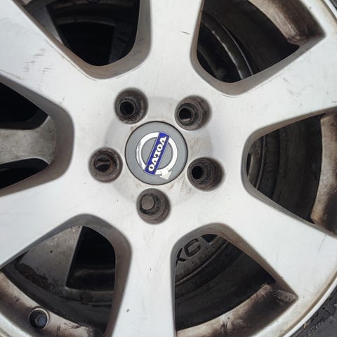 Tästä 4.kpl xc70 toisen generaation nelivetovolvosta. Yksi rengas puhki muut 3 ehjiä. Hyvästi on pintaa jäljellä.