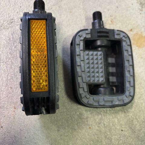 Polkupyörän metalliset polkimet.