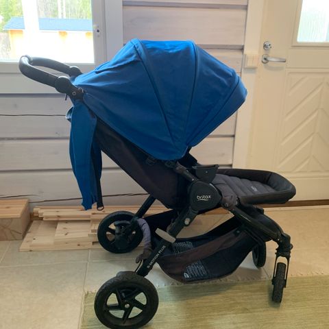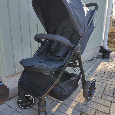 Kolmirenkaiset, ilmakumirenkain varustetut rattaat, joissa tilava tavarakori ja kätevä suuri säilytystasku työntökahvan alla. Juuri vaihdettu, uusi uv-suojattu kuomu, jossa ei käytönjälkiä. Mukaan tulee myös turvakaari sekä työntöaisan nahkainen suoja, työntöaisa virheetön. Eturenkaan saa lukittua kulkemaan suoraan. Selkänoja säädettävissä täysin makuuasentoon, jalkatukea voi myös säätää. Ainoat käytönjäljet rungossa, jossa naarmuja. Renkaista puuttuu venttiilin hatut, sillä ei vaikutusta ilman pysyvyyteen.