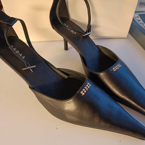 Käyttämättömät nahkaiset juhlakengät. Kauniit silkkinauhaa ja kuviointi sivuilla. Vetoketjut sivuissa. Korko noin 4-5cm. Koko 41.