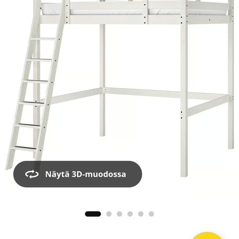 Lasten parvisänky, valkoinen. Sängyssä on tikkaat ja laidat molemmilla sivuilla. Runkomateriaali on puuta, pohjana puusäleet. Sängyn alle jää tilaa esimerkiksi säilytyslaatikoille tai leikkitilalle. Mitat tulossa.