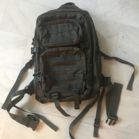 Musta taktinen reppu. Repussa on useita taskuja ja lokeroita sekä kiristysremmejä ja solkia. Soveltuu esimerkiksi arki- tai retkikäyttöön, kun tarvitaan tilava ja moniosainen kantoväline varusteille ja tarvikkeille. Uuden veroinen, pari kertaa käytetty.