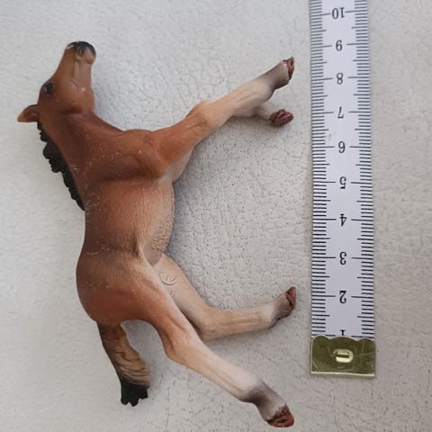 Schleich hevosenvarsan lelufiguuri. Ruskea hevosenvarsa, jossa tummemmat jalat ja harja. Kovamuovinen figuuri, sopii hevostallileikkeihin ja kokoelman täydentämiseen. Koko noin pienen käden kokoinen, tarkasti muotoiltu ja maalattu.