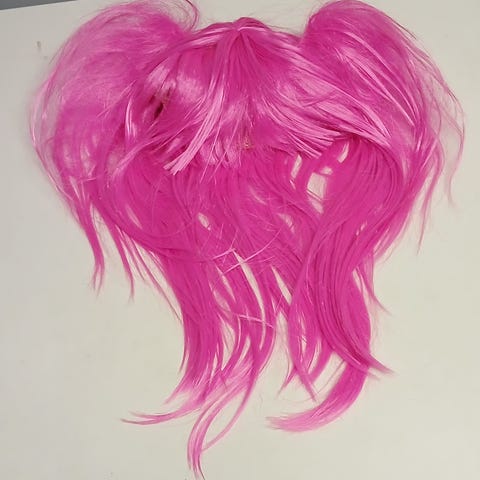 Myydään pinkki glitterihattu sekä tumma kiharainen peruukki pantakiinnityksellä. Parit juhlat juhlittu näillä.