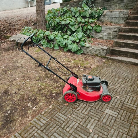 Briggs & Stratton bensiinikäyttöinen ruohonleikkuri. Leikkuukorkeus on säädettävissä. Leikkuri ollut käyttämättömänä 8 vuoden ajan, eikä kokeiltu lähteekö käyntiin. Vaatinee siis pientä huoltoa. Säilytetty kuivassa tilassa.