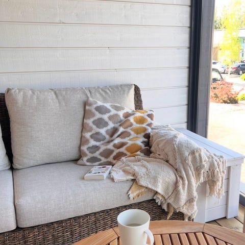 Kalusteet olleet vain viime kesän käytössä. Talvi säilytetty katoksen alla ja tyynyt sisätiloissa.