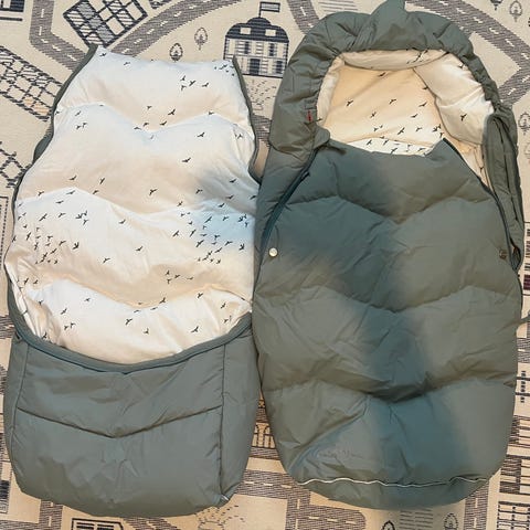 Voksi Urban untuvalämpöpussi vaunuihin vaihdettavalla ”etupalalla” joten sopii vauvalle ja isommille. Meillä käytetty mennyt talvi 3-vuotiaalla n.96cm lapsella ja mahtuisi vieläkin, mutta rattaiden käyttö jäänyt vähälle joten ei enää tarvetta.