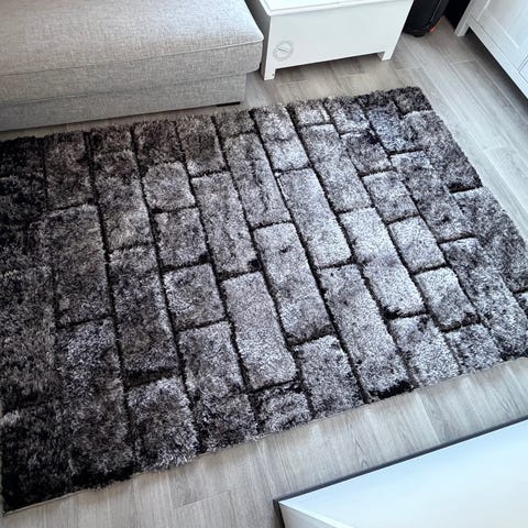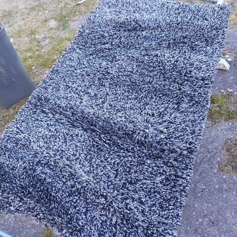 Hopeinen, 120cm halkaisija, nukkamatto. Ei erityisen likainen mutta ollut käytössä.