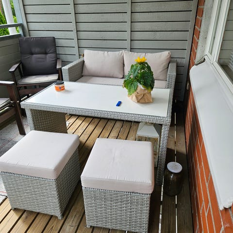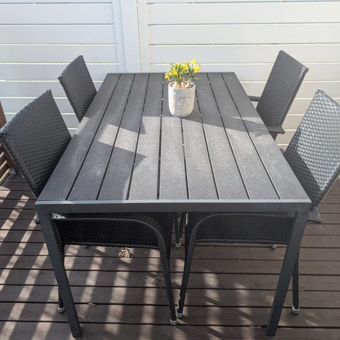Ruokailuryhmä, polyrottinkinen pöytä ja 4kpl tuoleja