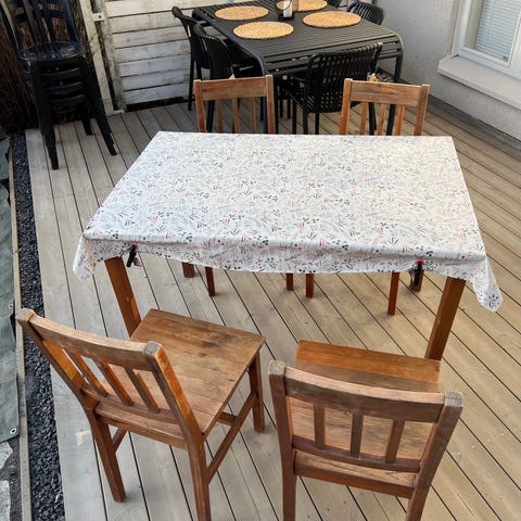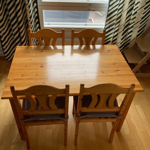 Myydään ruokailuryhmä muuton tieltä pois. Kunto kohtalainen. 120x75x75. Vain nouto
