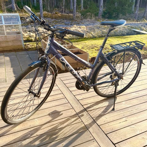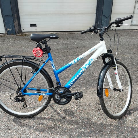 Vähän käytetty naisten Yosimite Valley pyörä, jonka etupyörässä joustohaarukka. Satulaksi vaihdettu tavallista suurempi/lököisämpi satula. Pyörä on säilytetty sisällä ja on uudehkon veroinen.