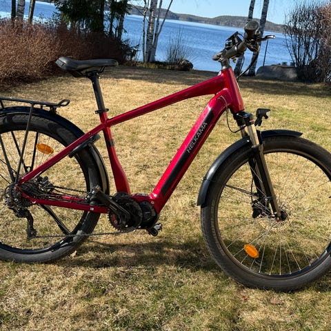 Juuri huollettu (Intersport) ja vähän ajettu Helkama CE10 punaisella rungolla. Tällä kauniilla sähköhybridillä kelpaa ajella niin kaupungissa kuin hiekkatiellä.
