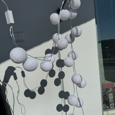Clas Ohlson valkoinen pilvivalaisin. Toimii neljällä AA-paristolla. Leveys noin 24,5 cm, korkeus noin 14,5 cm.