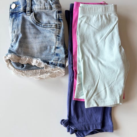 Pastellisävyiset biker-shortsit.