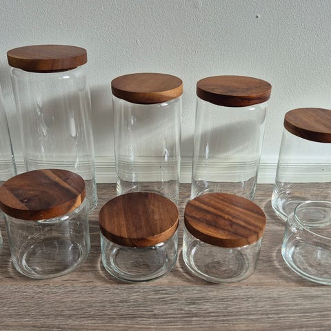Tarpeettomiksi jääneet 4 noin litran vetoista lasipurkkia metallikansilla etsivät uutta kotia.