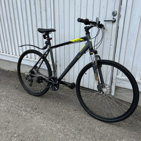 Pientä laittoa vaativa miesten hybridi pyörä, 24-vaihteinen. Etu v-jarru hankaa vanteeseen, mutta pienellä säädöllä saanee nopeasti ajokuntoon. Samoin vaihteet kaipaavat pientä säätöä, muutoin täysin ajokuntoinen. Myydään pois uuden pyörän tieltä.