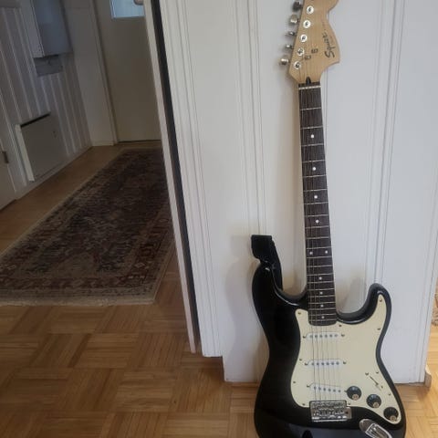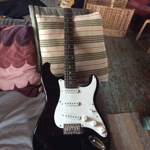 Myydään sähkökitara ja vahvistin. Tarvittavat johdot mukana. Squier Stratocaster. Jakki hieman löysä, ei ole itse yritetty korjata. Vähällä soitolla ollut.